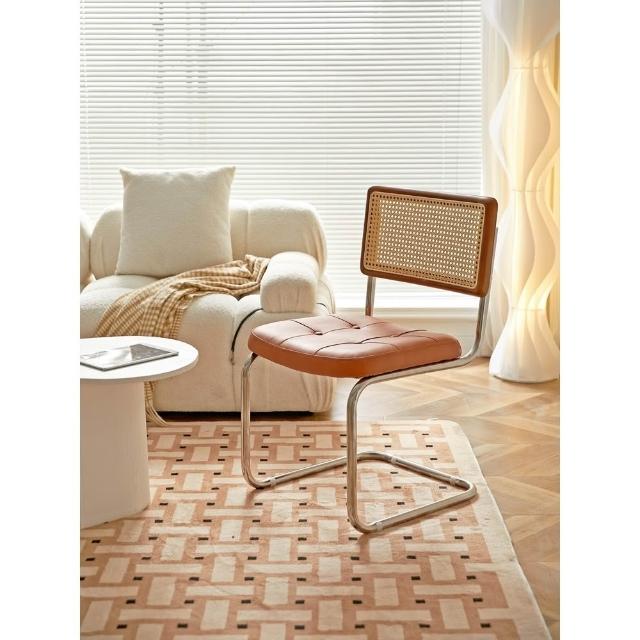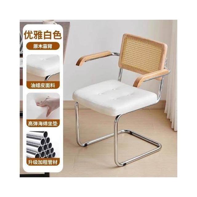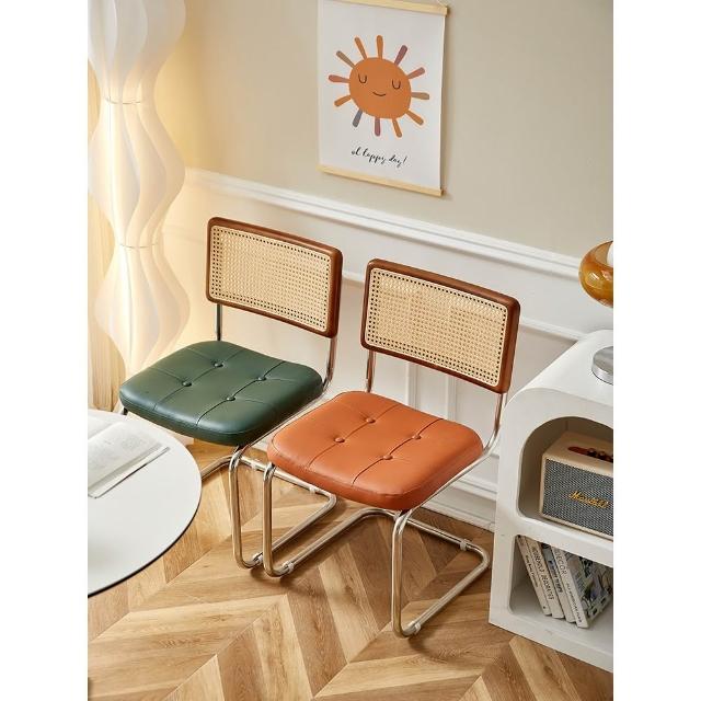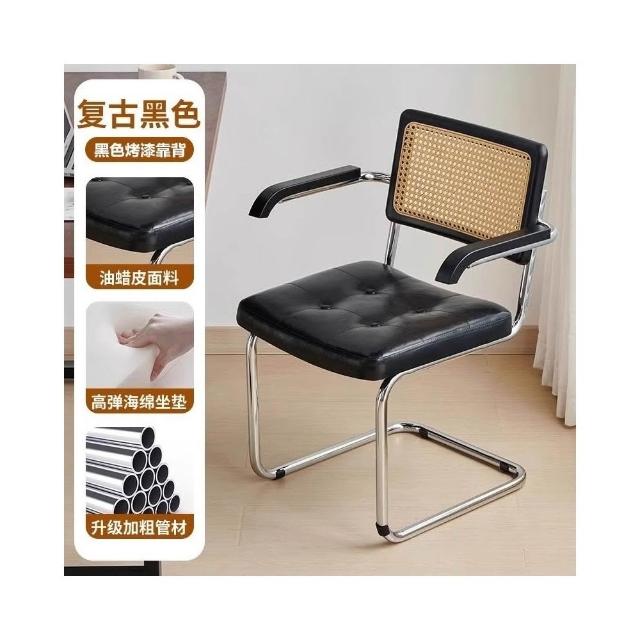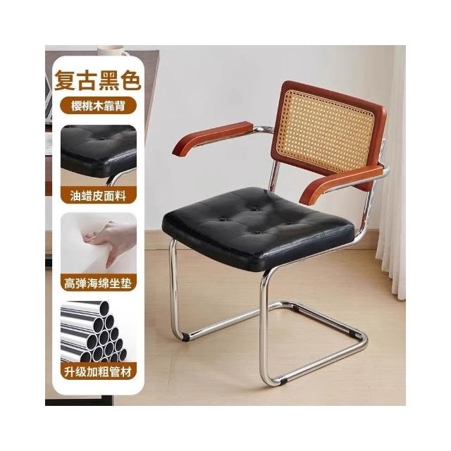实木餐椅家用中古风藤编椅子靠背网红弓形椅复古民宿咖啡厅餐桌椅