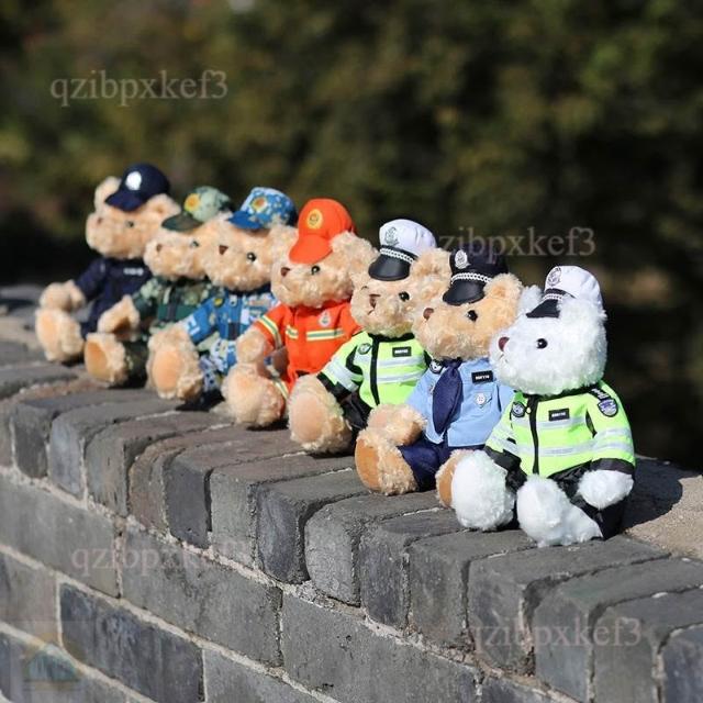 交警小熊公仔 鐵騎小熊制服 警察消防小熊玩偶 網紅交通小熊 特警小熊 棉公仔 動物玩偶 職業公益慈善
