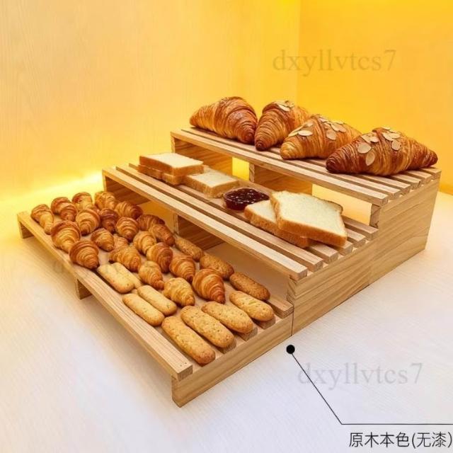 實木麵包架 桌面多層階梯式商用展示架 餐檯木條型食材展示木架 定製麵包架 西點展示架 糕點西餅展示架