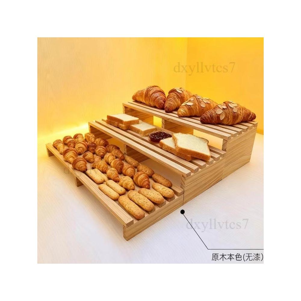 實木麵包架 桌面多層階梯式商用展示架 餐檯木條型食材展示木架 定製麵包架 西點展示架 糕點西餅展示架