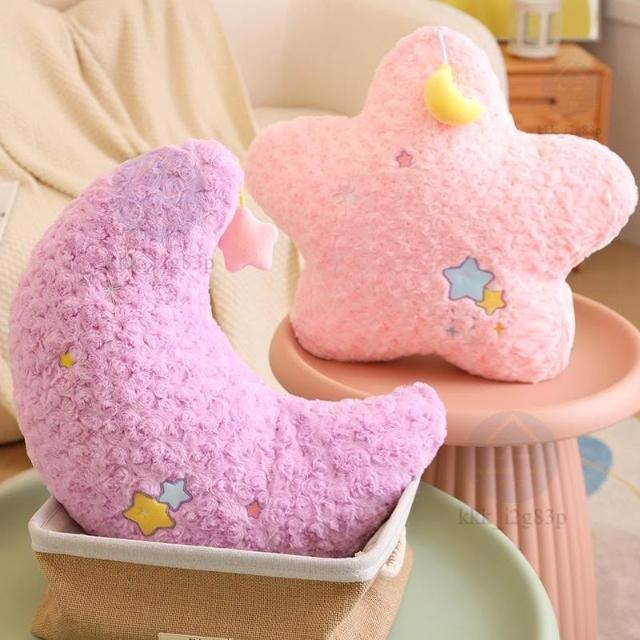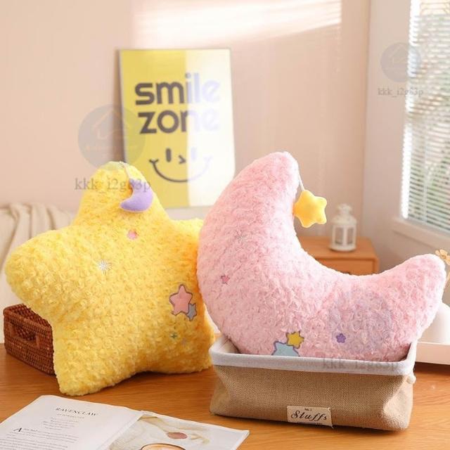 可愛抱枕 小星星抱枕 毛絨玩具公仔 月亮靠墊 沙發靠枕 少女心靠墊 超軟抱枕 玩偶禮物
