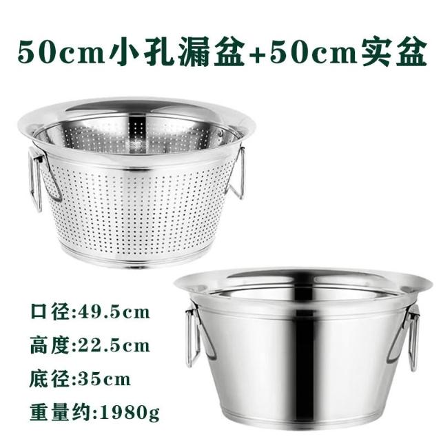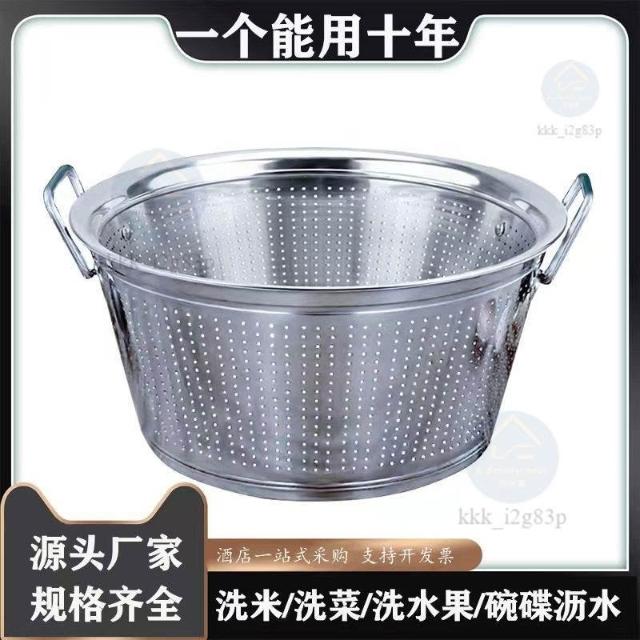 淘米籮不銹鋼漏盆商用洗米神器食堂洗菜盆濾水桶瀝水籃大號洗米篩