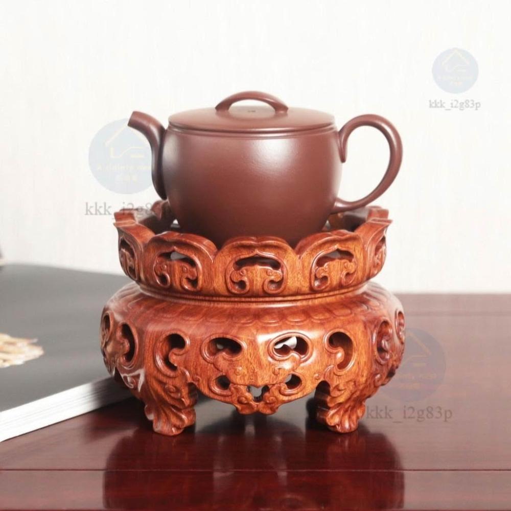 圓形雕刻實木擺件底座花瓶茶壺香爐瓷器佛像木托瓷器奇石盆景底托