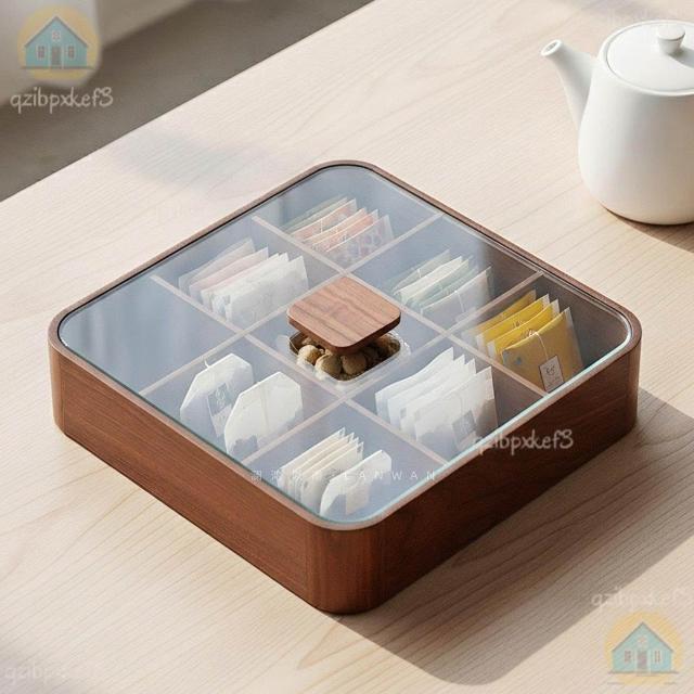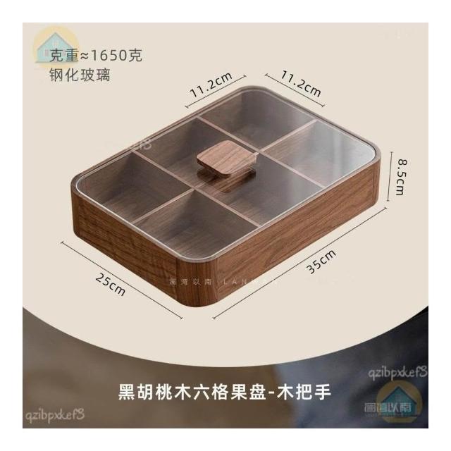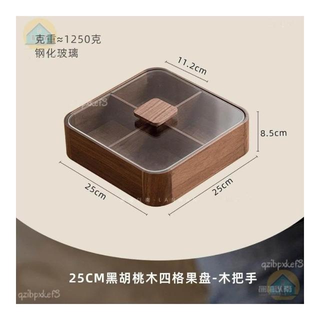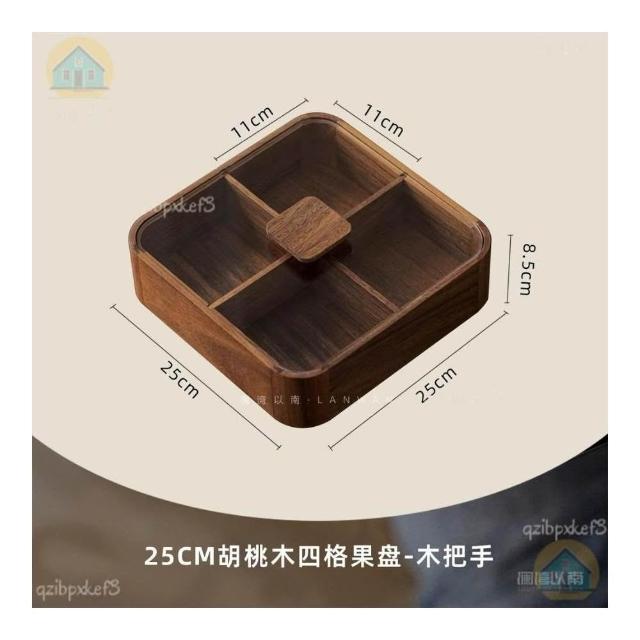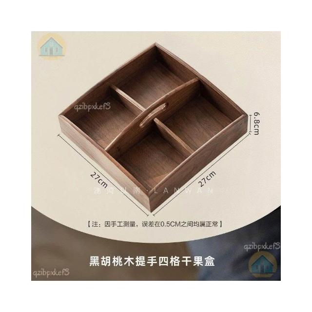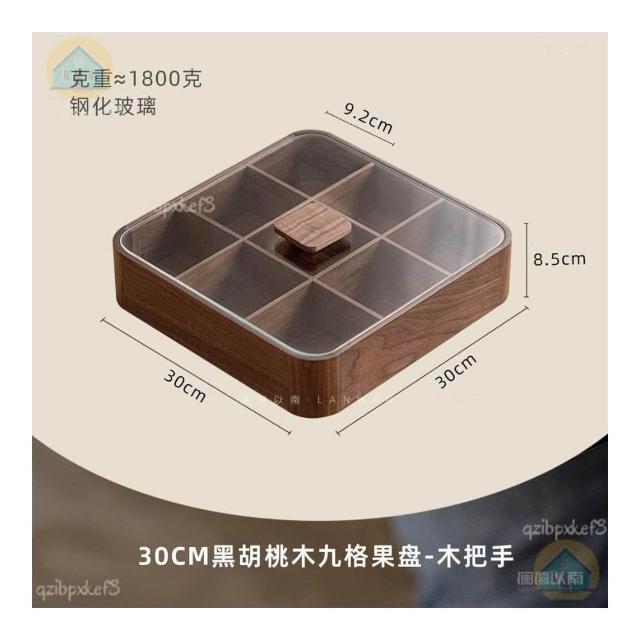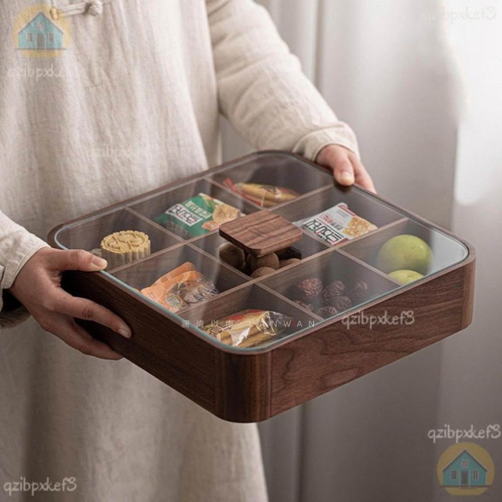 黑胡桃木帶蓋果盒 實木分格糖果盒 九宮格堅果盒 零食收納盒 實木乾果盤 客廳收納盒 中式分格果盤