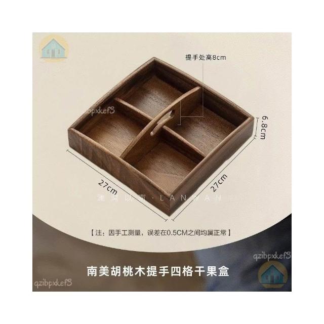 黑胡桃木帶蓋果盒 實木分格糖果盒 九宮格堅果盒 零食收納盒 實木乾果盤 客廳收納盒 中式分格果盤