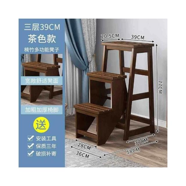 加厚加高二步凳 摺疊實木梯凳 三步家用室內多功能登高梯子凳 樓梯椅子 階梯凳 三層樓梯椅 折疊梯 工