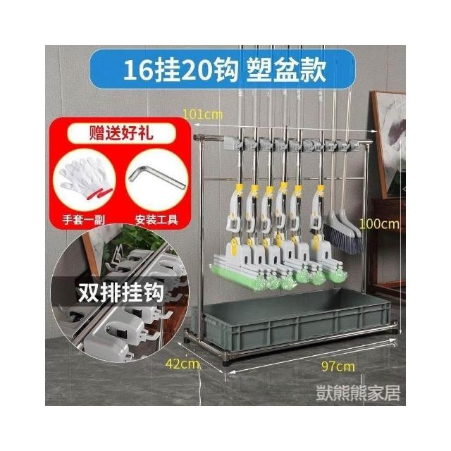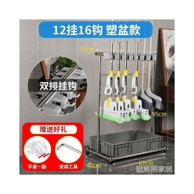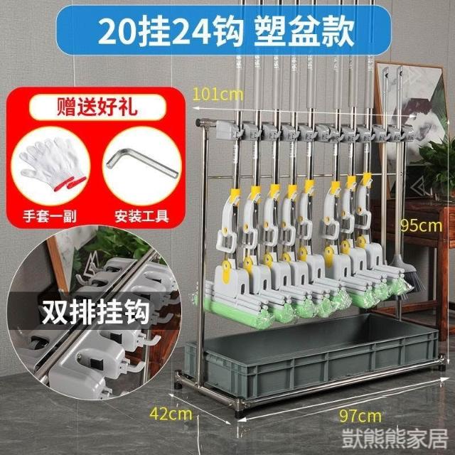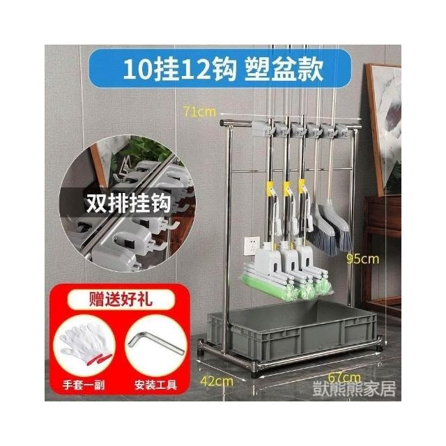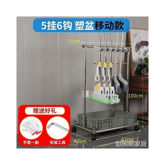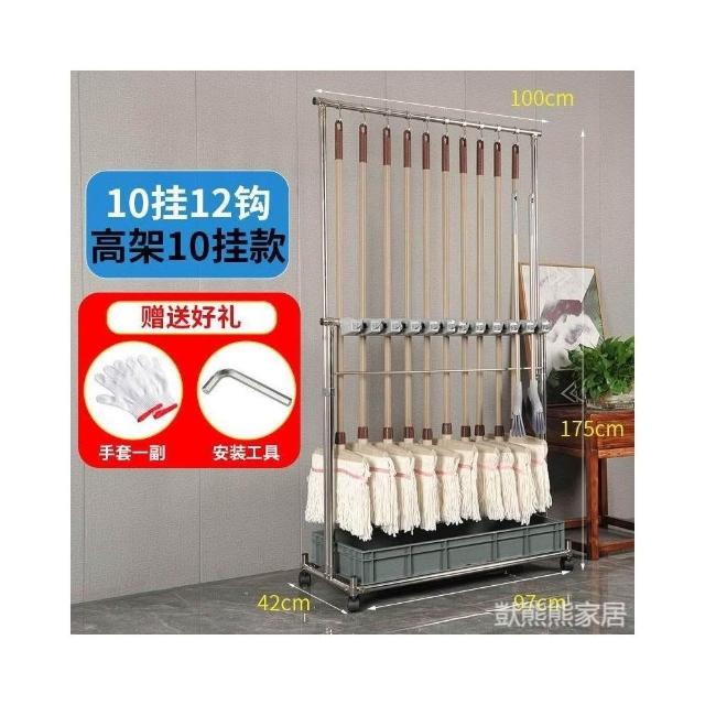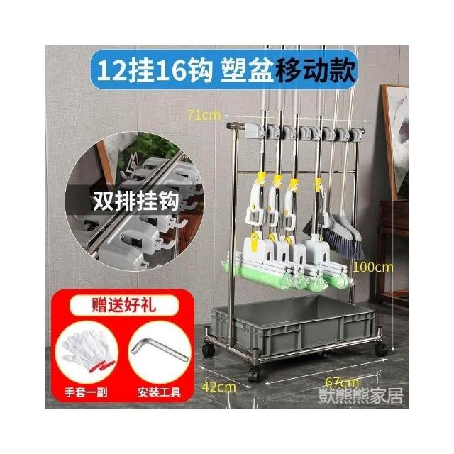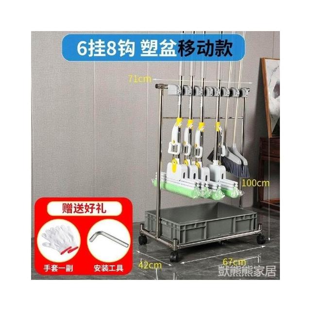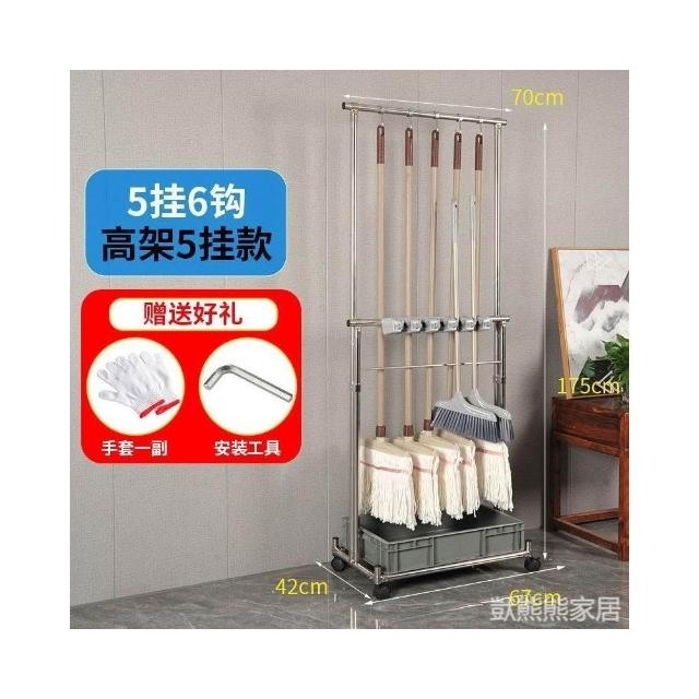 不銹鋼落地式拖把架可移動商用置物架墩布掃把架清潔工具收納架子