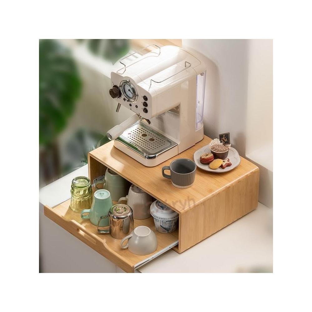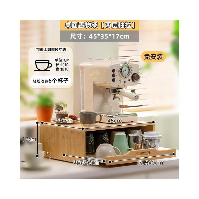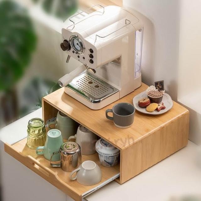咖啡機置物架 桌面增高架 家用咖啡杯收納架 抽拉式防塵茶包 馬克杯架 防塵收納增高架 咖啡機增高架