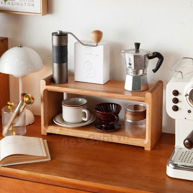 純實木桌面杯子收納架 咖啡杯子茶具收納架 黑胡桃櫻桃實木桌面置物架 多層置物收納架 桌面收納架