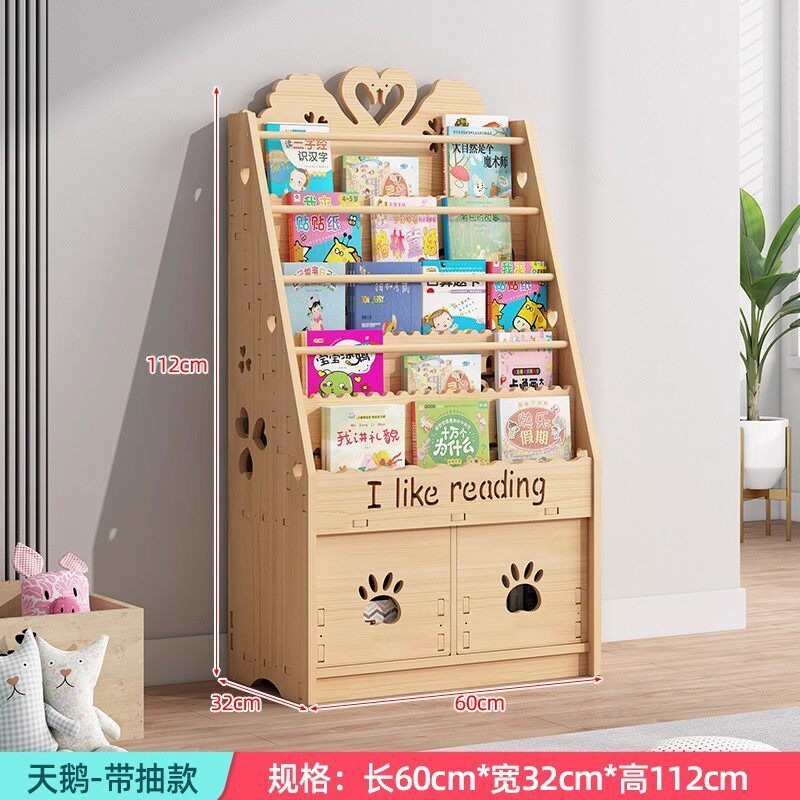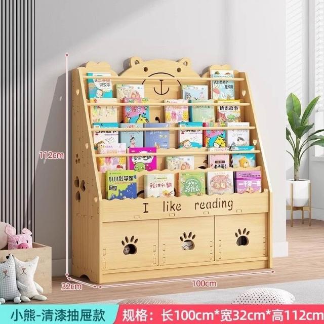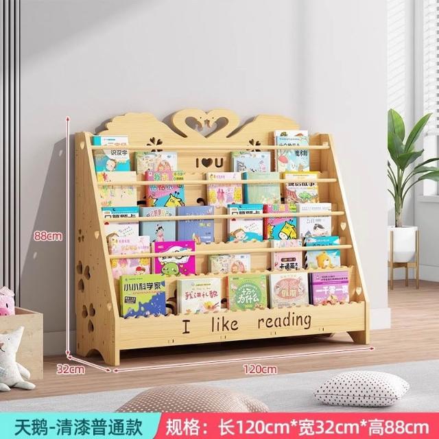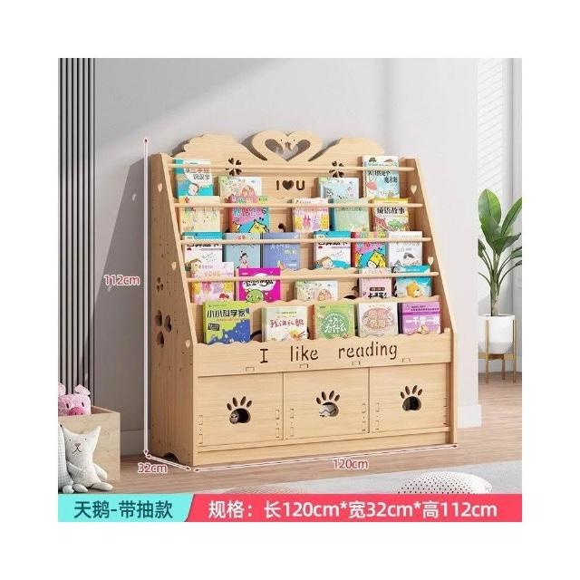 實木兒童繪本書架落地置物架 展示玩具收納幼兒園 寶寶閱讀書櫃儲物
