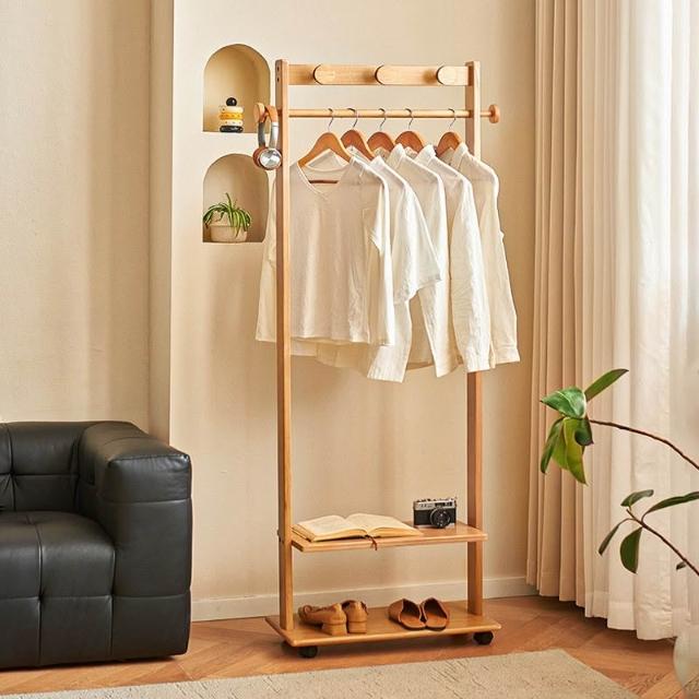 橡木實木掛衣架衣帽架入戶門口 門後臥室落地小型家用 室內涼衣服架