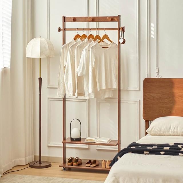 橡木實木掛衣架衣帽架入戶門口 門後臥室落地小型家用 室內涼衣服架