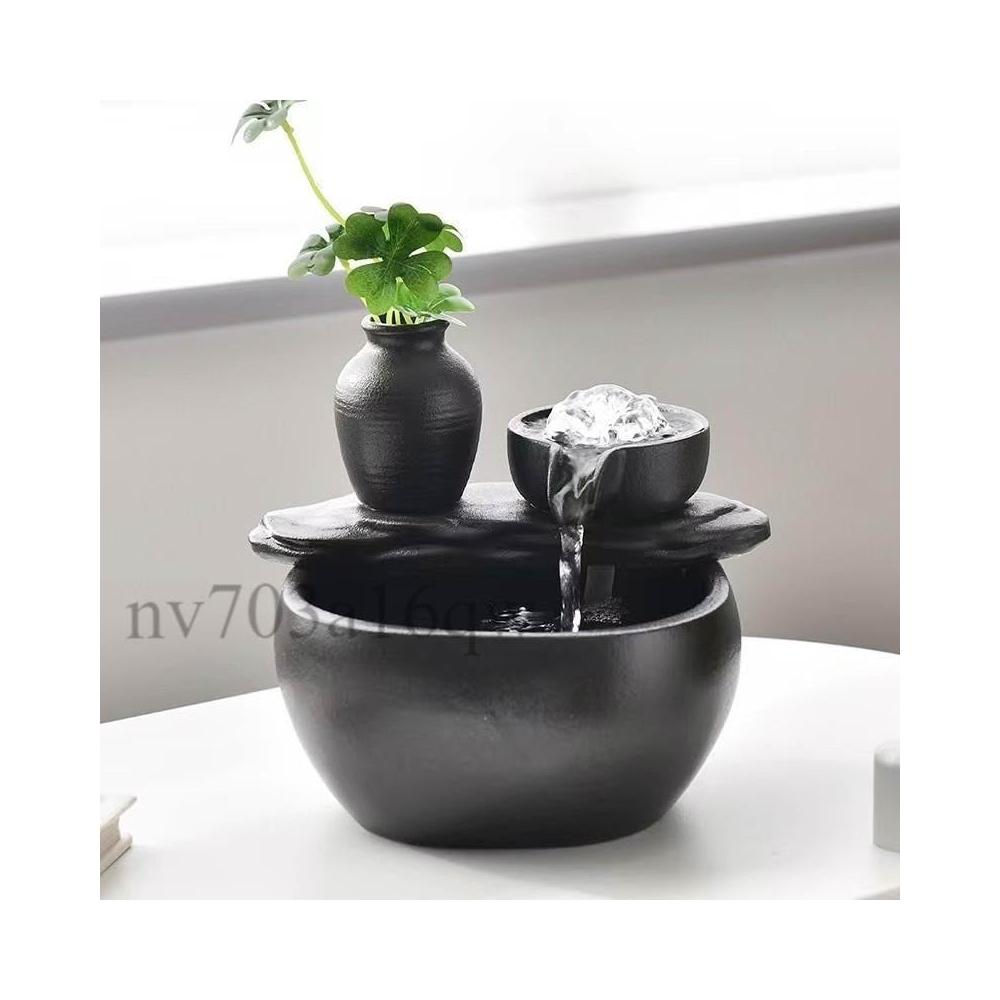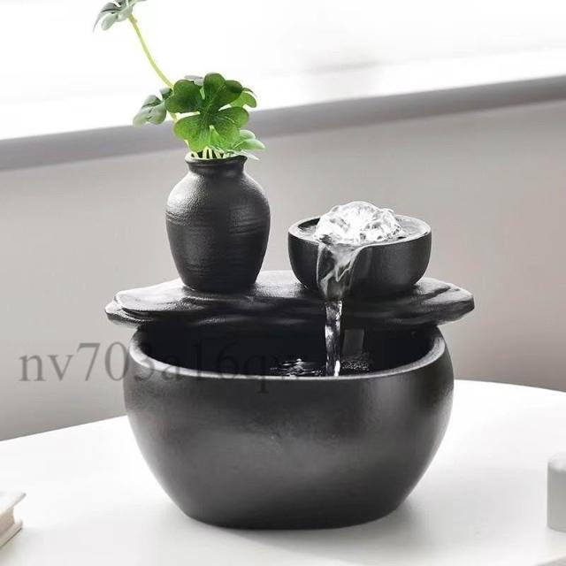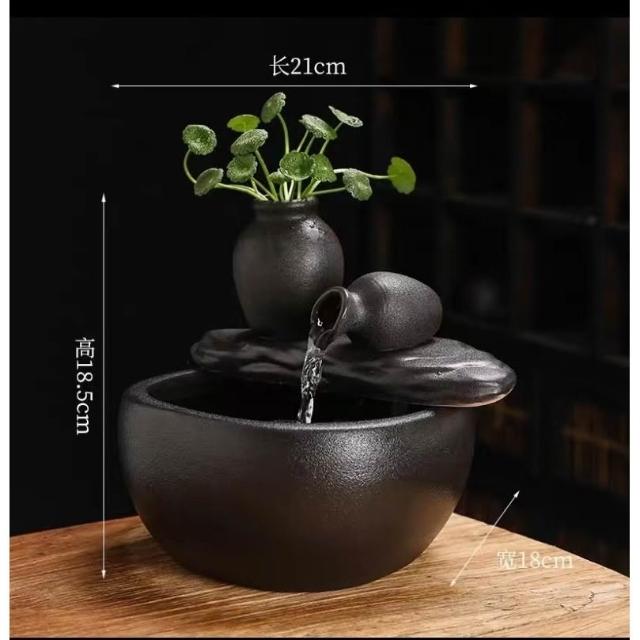 不插電流水擺件 蓄電池充電流水擺件 不插電流水招財擺件 招財流水擺件循環水辦公室桌麵小型魚缸噴泉
