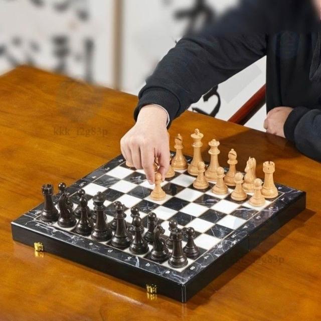高檔國際象棋折疊禮盒棋盤鋼琴漆加重木紋棋子標準成人比賽