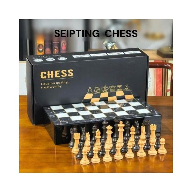 高檔國際象棋折疊禮盒棋盤鋼琴漆加重木紋棋子標準成人比賽