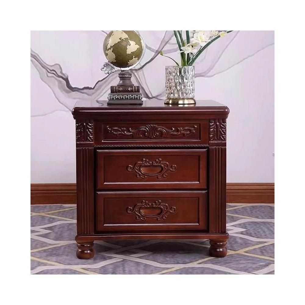 雕花中式床頭櫃實木臥室家用抽屜帶鎖整裝收納復古床邊簡約儲物櫃