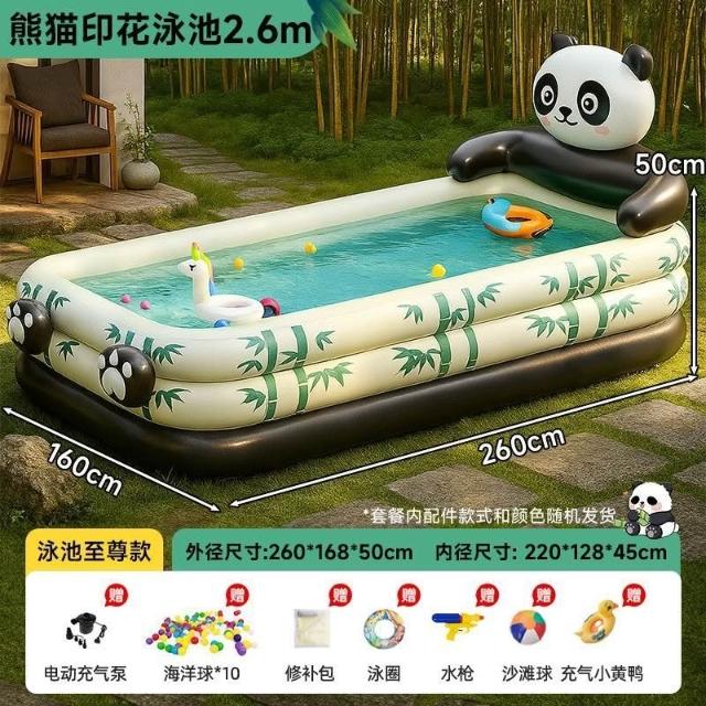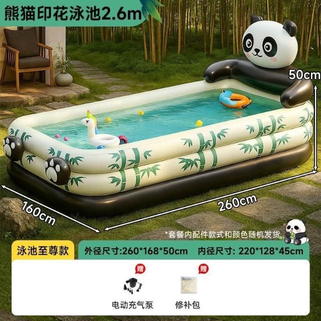 熊貓游泳池 家用夏天游泳洗澡玩水兒童小孩充氣式摺疊大型泳池 充氣泳池 折疊游泳池 家庭戲水池 戲水池