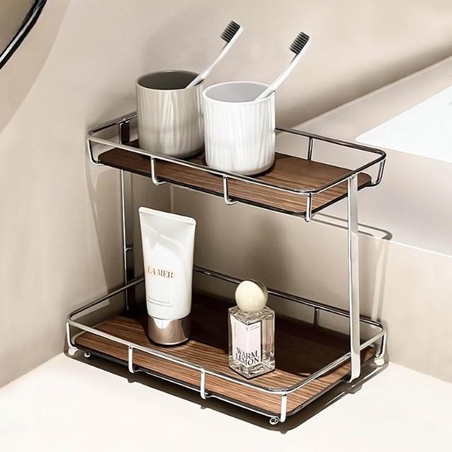 胡桃木衛生間化妝品置物架洗手洗漱台護膚台面浴室收納不銹鋼香水