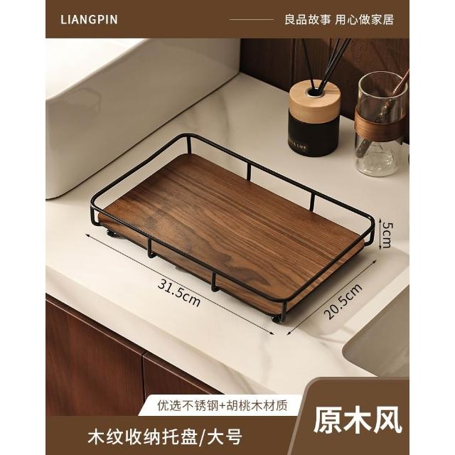 胡桃木衛生間化妝品置物架洗手洗漱台護膚台面浴室收納不銹鋼香水