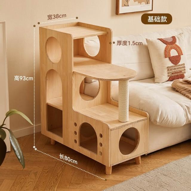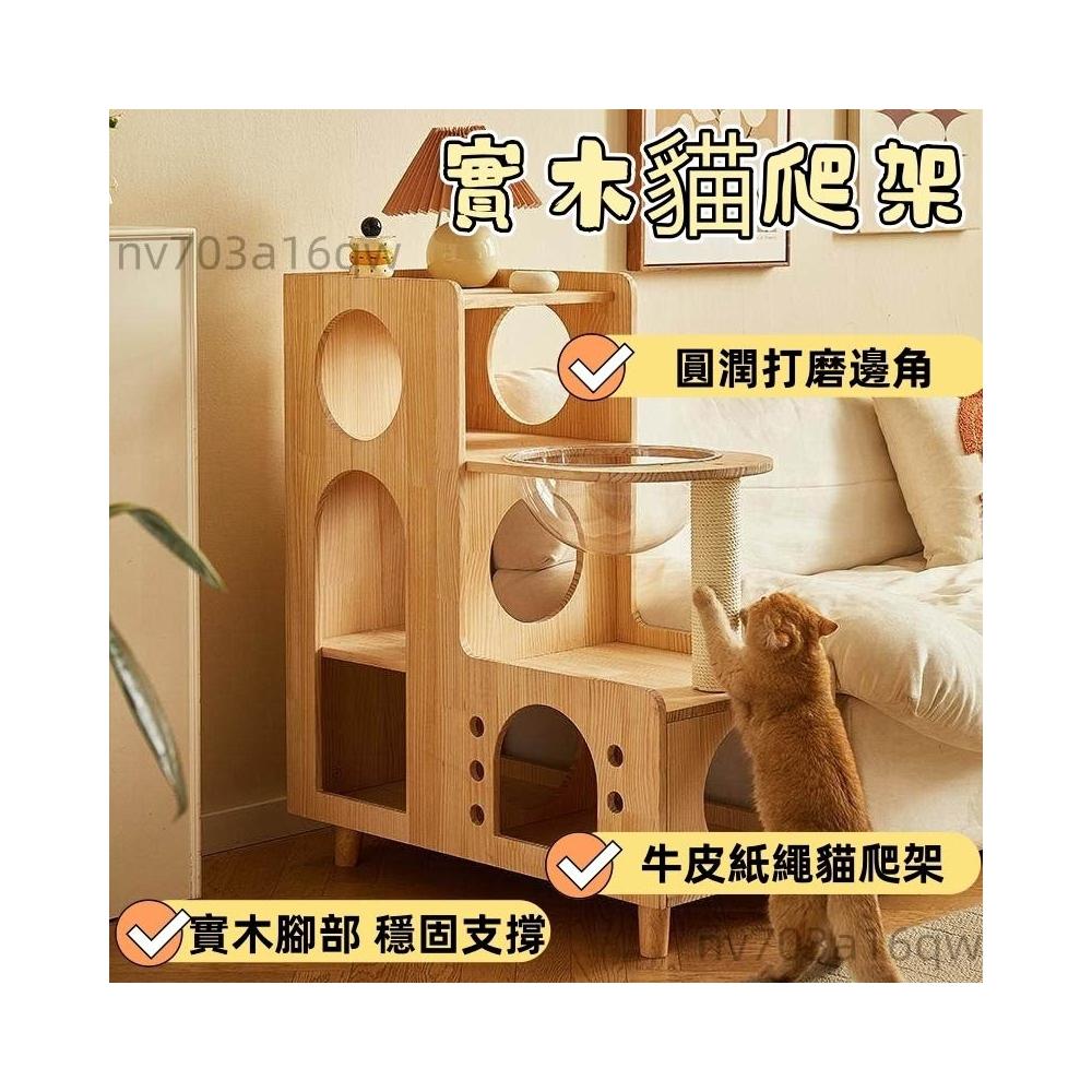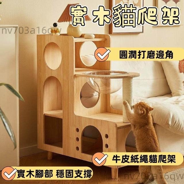 四季通用實木貓爬架 貓窩一體多貓家庭貓窩 貓抓柱 貓跳台 貓抓柱 貓窗台 貓樹 貓咪爬梯 太空艙 貓
