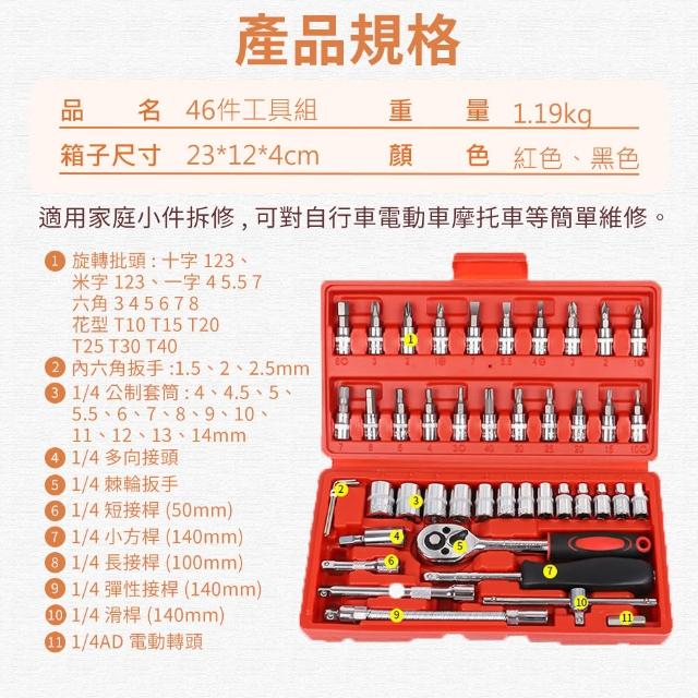 購物寓 46件工具組 專業工具組 工具箱 46件套 六角套筒 螺絲起子 十字起 一字起 旋具套筒