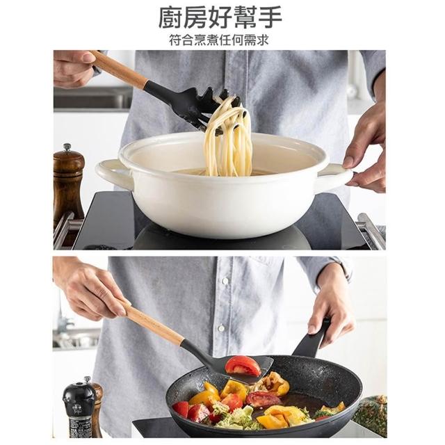 購物寓 不沾鍋!食品級矽膠廚具12件組 鍋鏟 刮刀 刮鏟 食物夾 湯杓 漏鏟 意粉爪 麵撈 油刷 打蛋器 漏勺