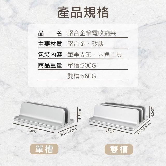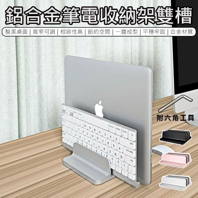 購物寓 鋁合金筆電收納架-雙槽 筆電架 筆電站立架 直立式 筆電直立架