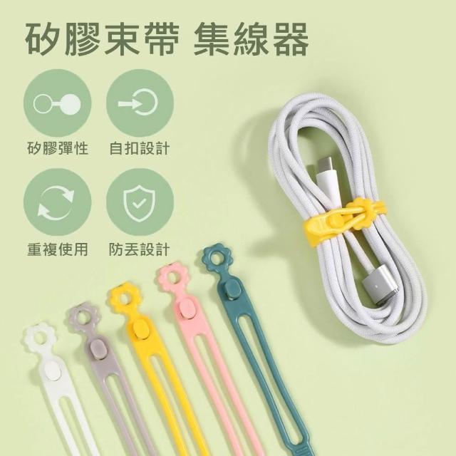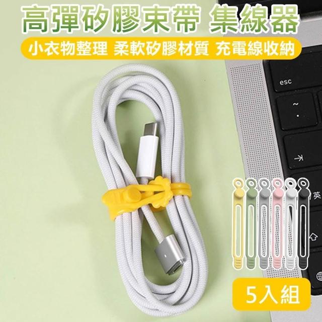 購物寓 矽膠束帶 集線器-5入 綁帶 耳機線束帶 整線器 固定繩 繞線器 理線器 矽膠綁帶 捲線器