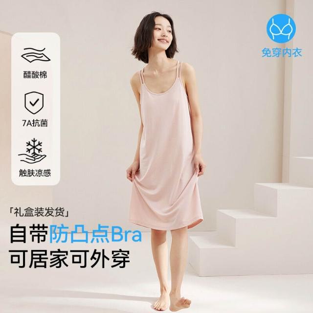 🎌日本工藝&柔軟親膚💨 帶胸墊吊帶睡裙夏季女新款冰絲大碼寬松顯瘦可外穿家居服吊帶睡衣