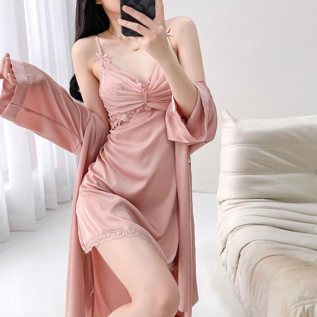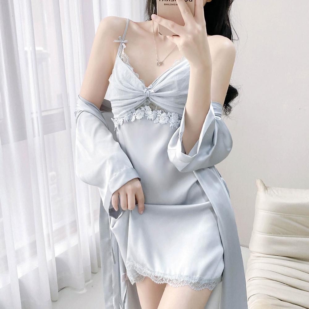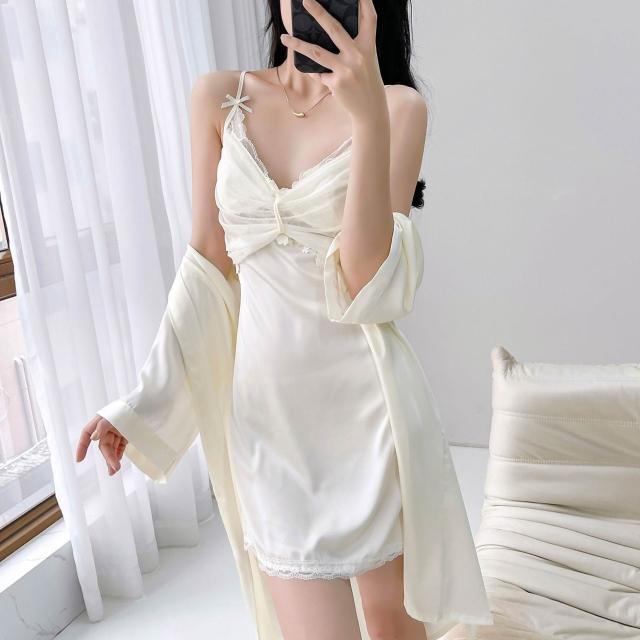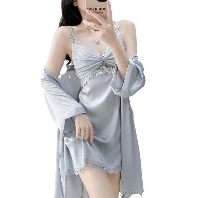 🎌日本工藝&柔軟親膚💨 純欲風帶胸墊性感誘惑吊帶睡裙冰絲睡衣女蕾絲短裙家居服春夏秋季