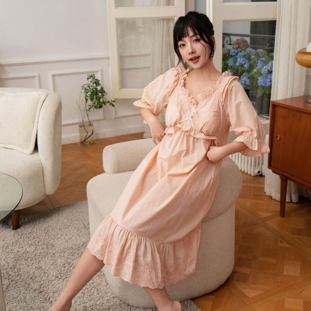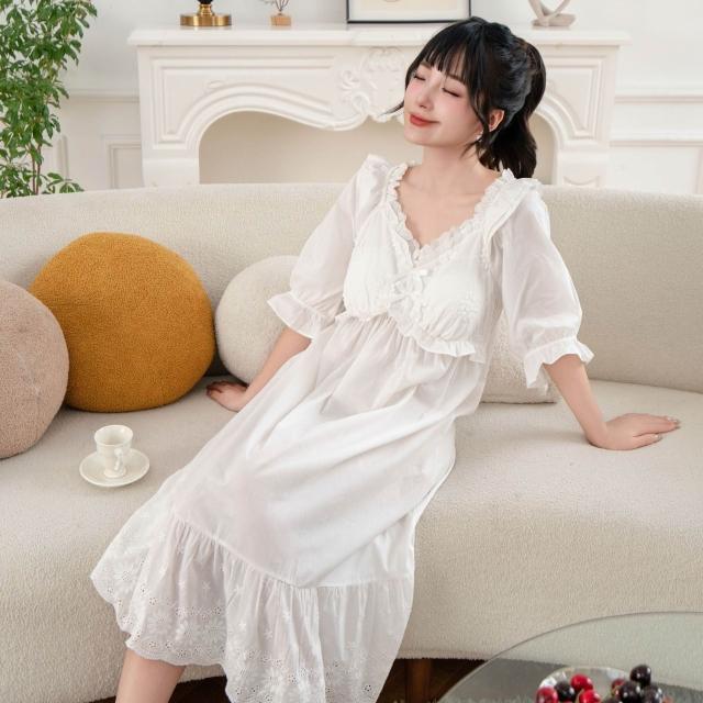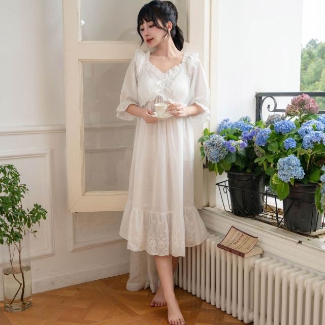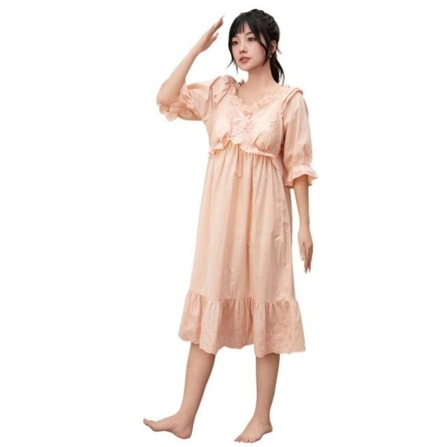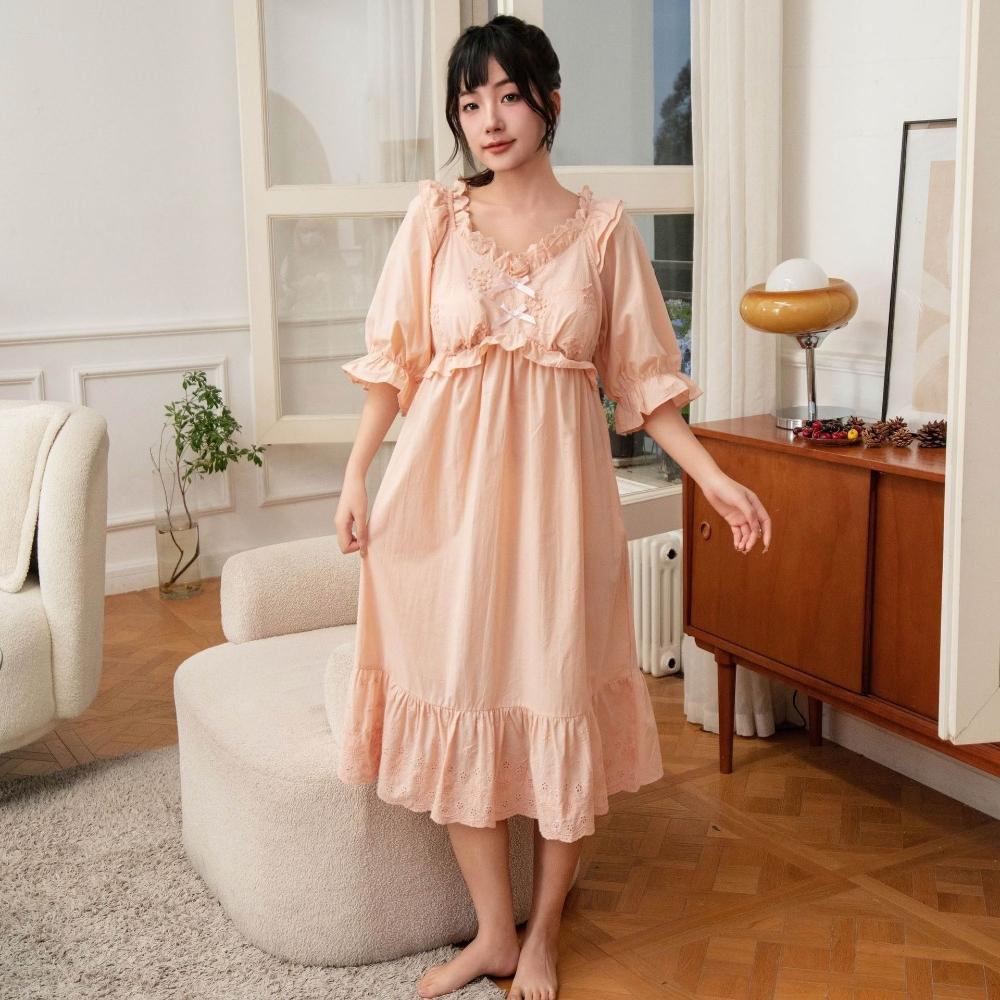 🎌日本工藝&柔軟親膚💨 加胸墊睡裙女夏季新款法式甜美寬松純棉布高級感睡衣公主風家居服