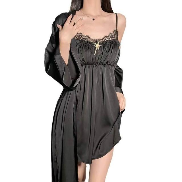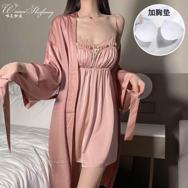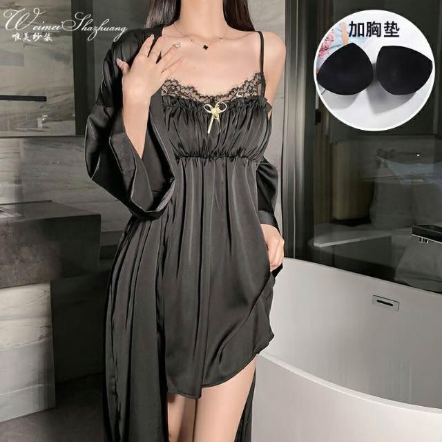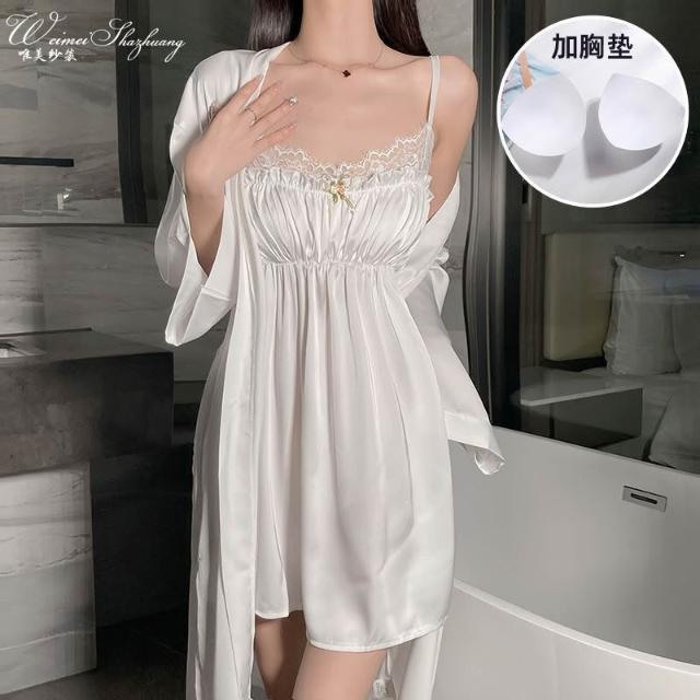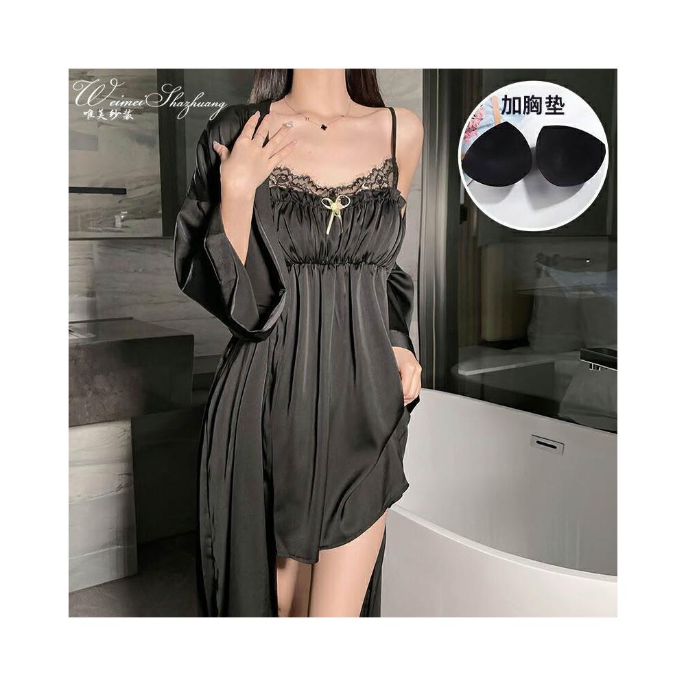 🎌日本工藝&柔軟親膚💨 性感露背蕾絲吊帶自帶胸墊純欲絲滑家居服套裝睡裙夏季薄款睡衣