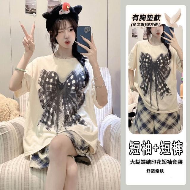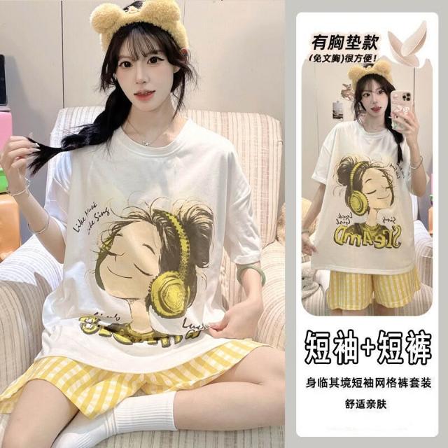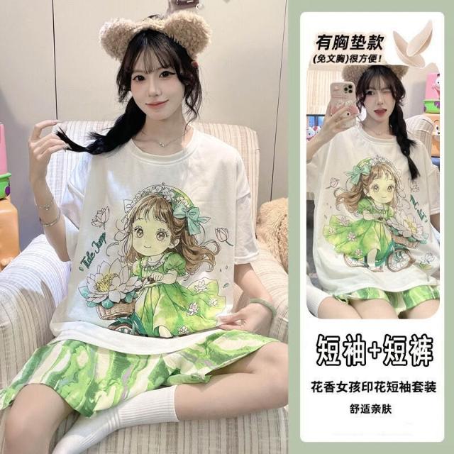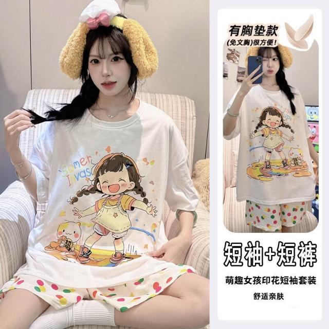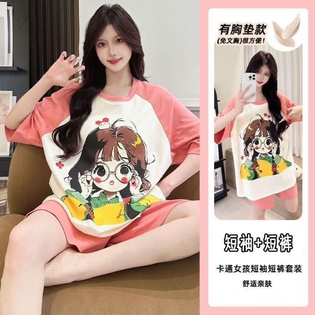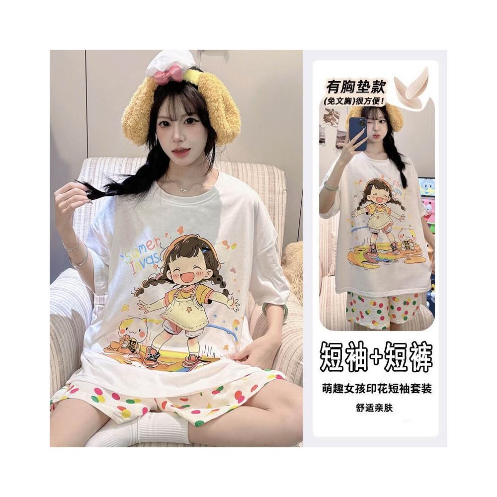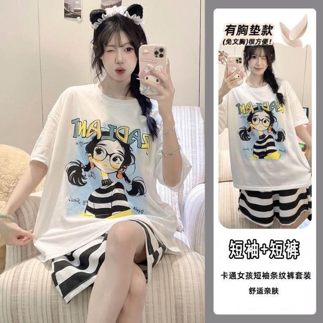 🎌日本工藝&柔軟親膚💨 2025年新款自帶胸墊一體睡衣女士夏季短袖卡通薄款大碼家居服套裝