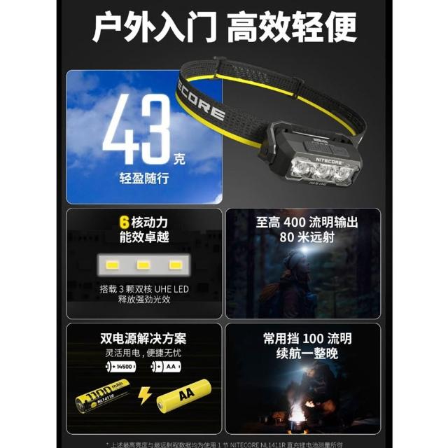 NITECOREHA15 UHE 多用途輕量AA頭燈 400流明 80米 紅白光 帽夾燈 肩燈 雙電源