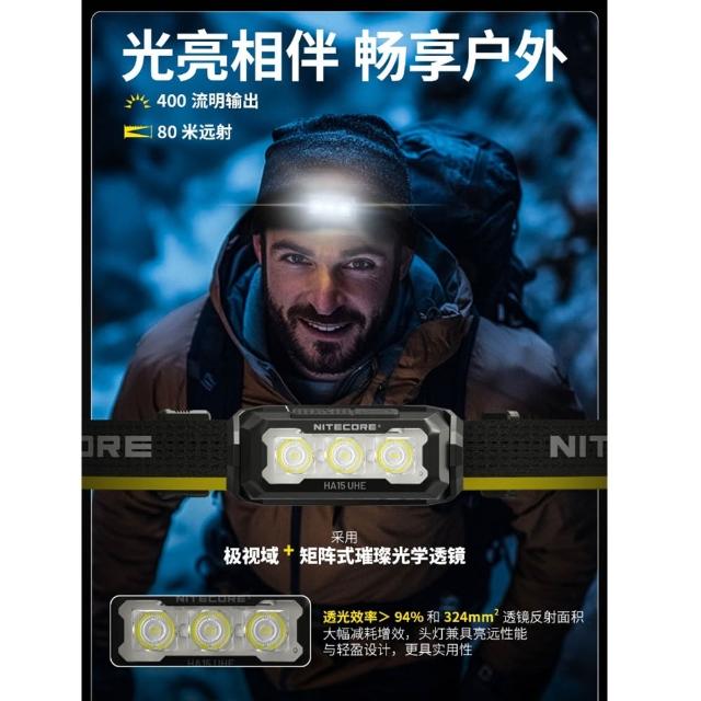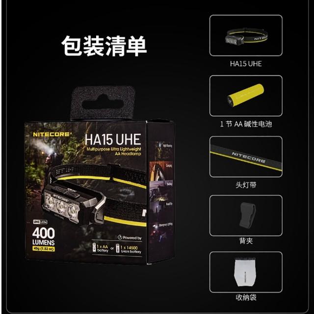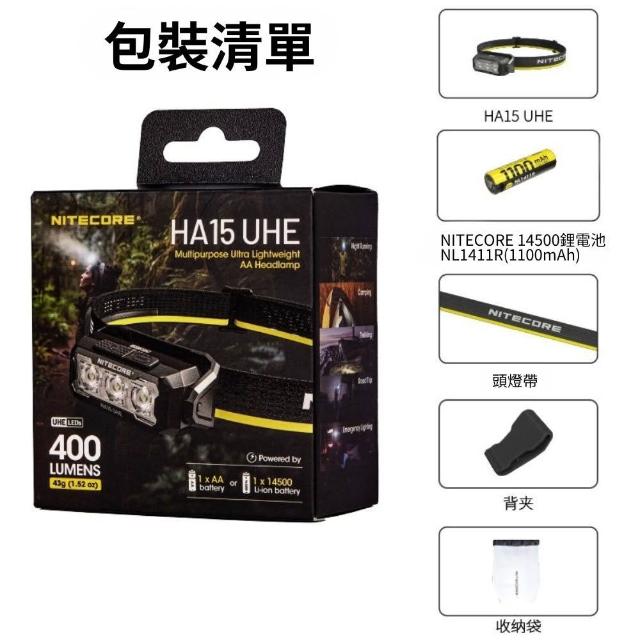 NITECOREHA15 UHE 多用途輕量AA頭燈 400流明 80米 紅白光 帽夾燈 肩燈 雙電源