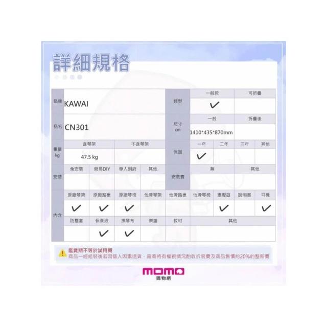 KAWAI 河合KAWAI CN301 88鍵 電鋼琴 數位鋼琴 附原廠升降椅(送保固3年/耳機/鋼琴保養油)