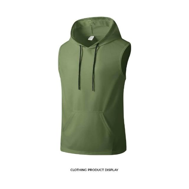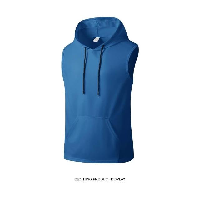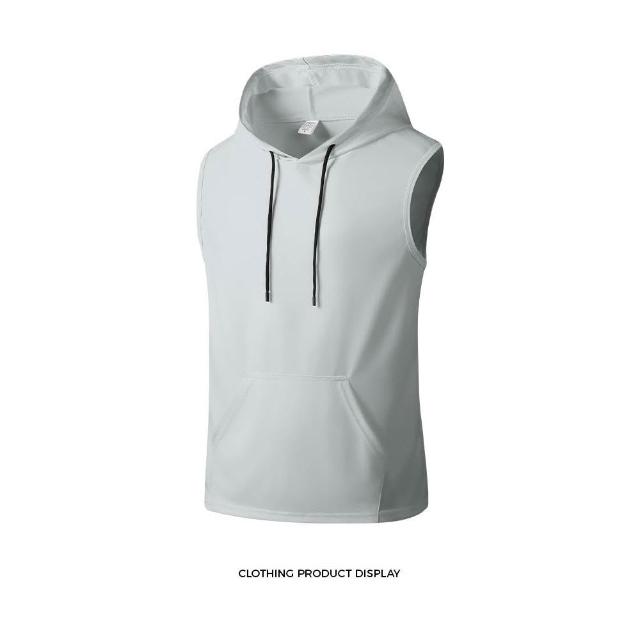 夏季無袖背心冰絲純色男士汗衫運動健身跨欄連帽背心T恤時尚百搭無袖帽衫