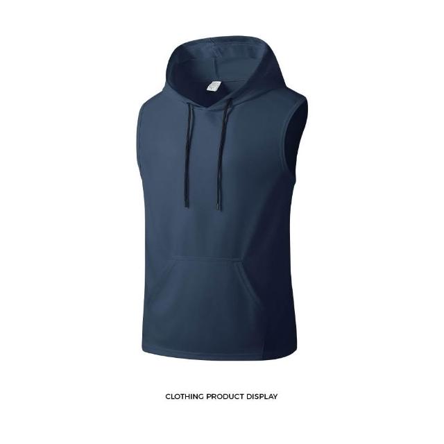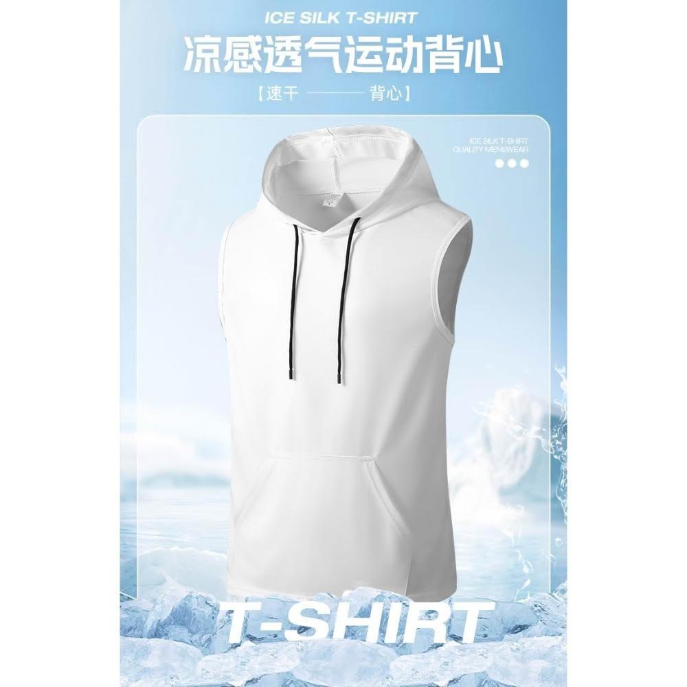 夏季無袖背心冰絲純色男士汗衫運動健身跨欄連帽背心T恤時尚百搭無袖帽衫