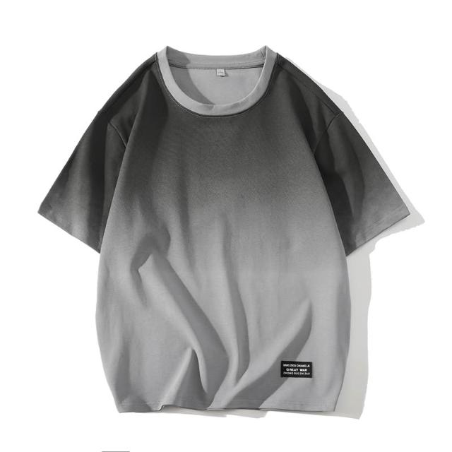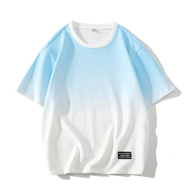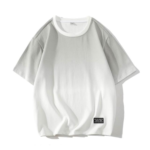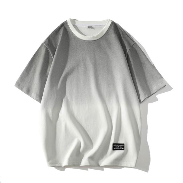 日系白底平鋪夏季男潮流寬鬆服潮牌學生短袖T恤漸變色半袖T恤