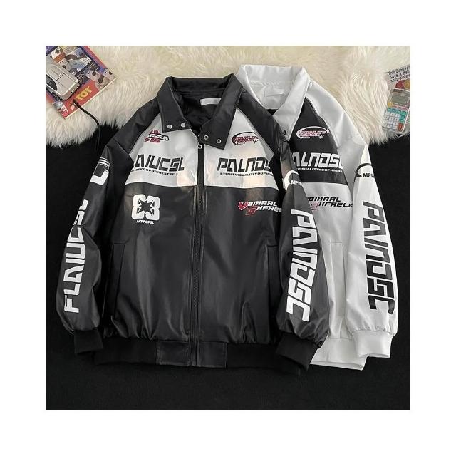 賽車服外套男款秋季裝美式PU皮夾克痞帥高街機車衣服oversize潮牌