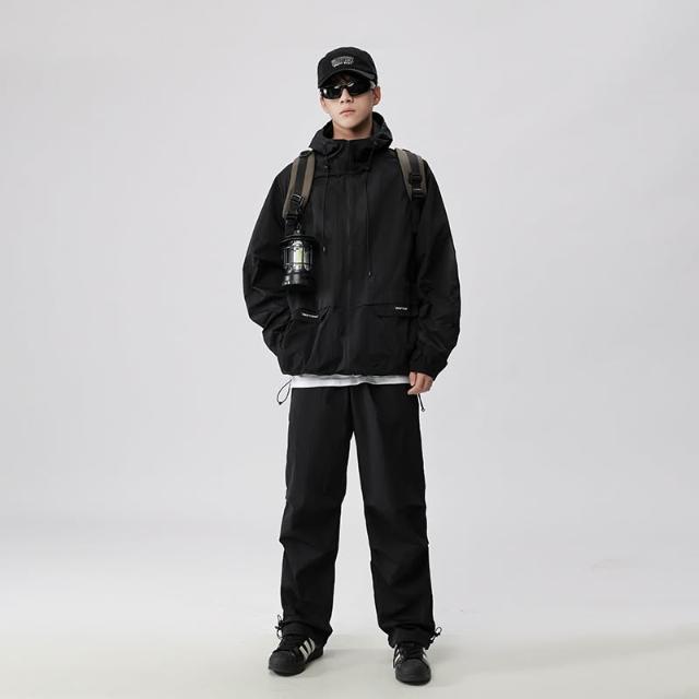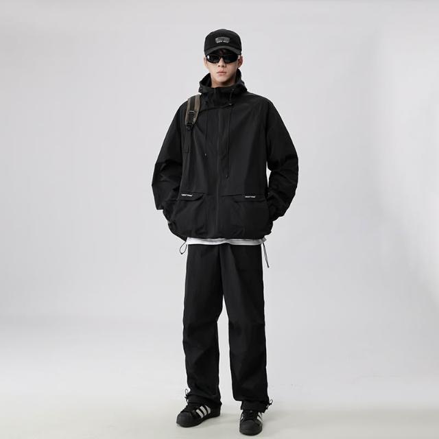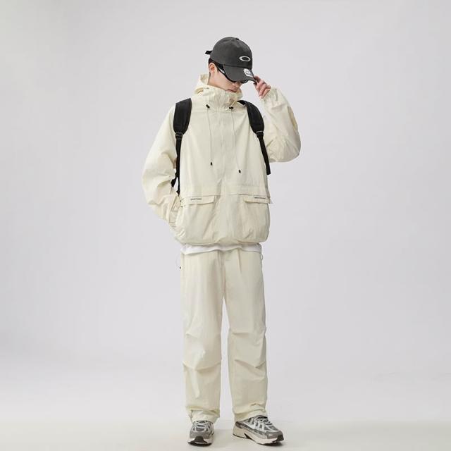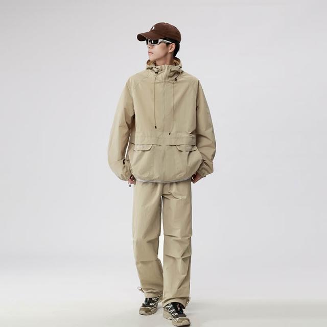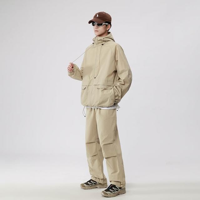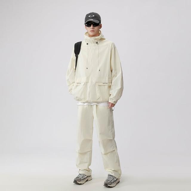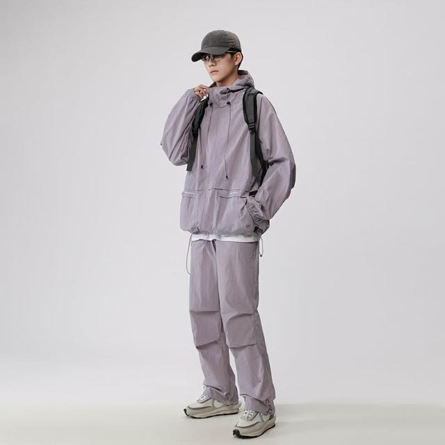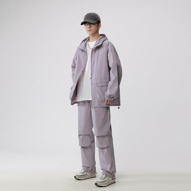 高品質錦綸透氣輕薄防紫外線修身情侶款套裝純色戶外連帽防晒服