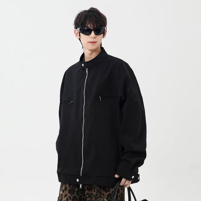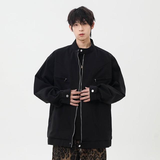 春秋款純色外套男休閑潮牌潮牌學生青年帥氣百搭上衣外穿夾克男