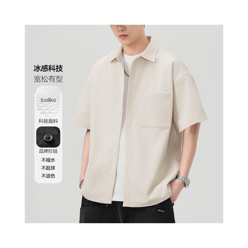 夏季男潮流寬鬆服潮牌學生短袖T恤提花冰絲上衣翻領襯衫