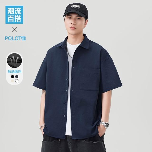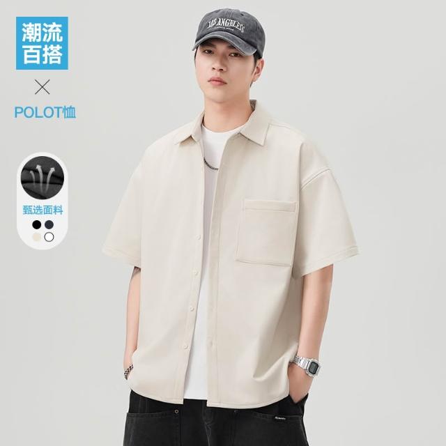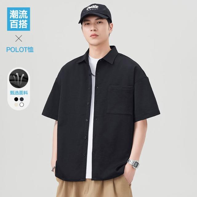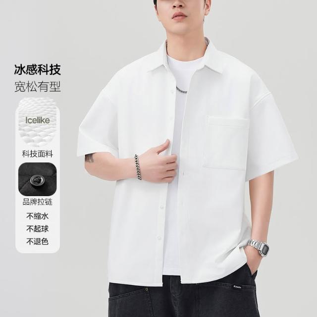 夏季男潮流寬鬆服潮牌學生短袖T恤提花冰絲上衣翻領襯衫