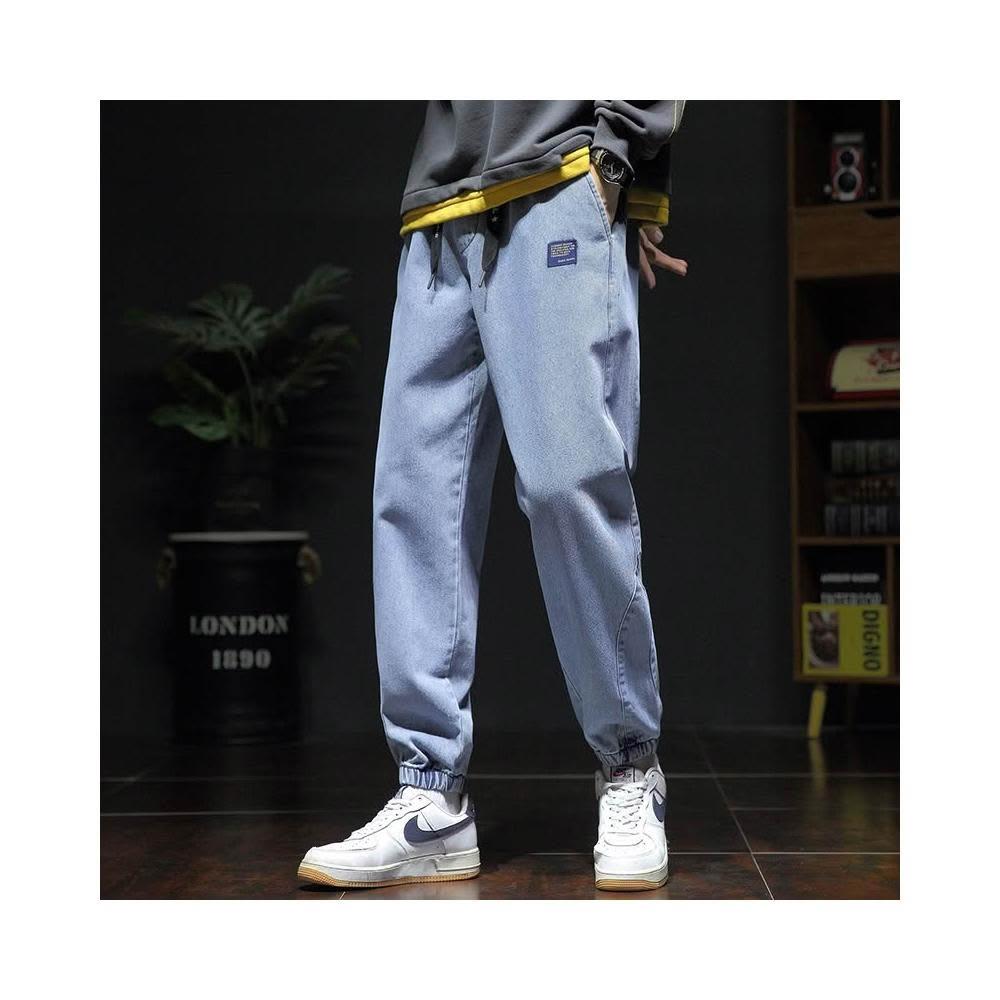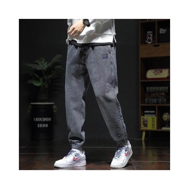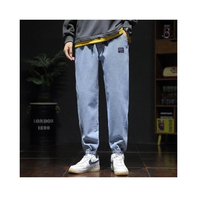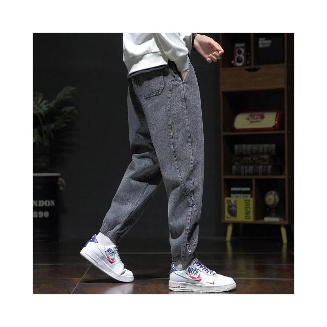 大碼M-8XL 男士潮牌寬鬆休閑百搭束腳加肥加大褲子九分牛仔褲