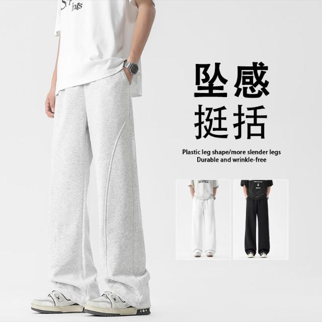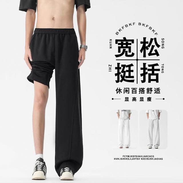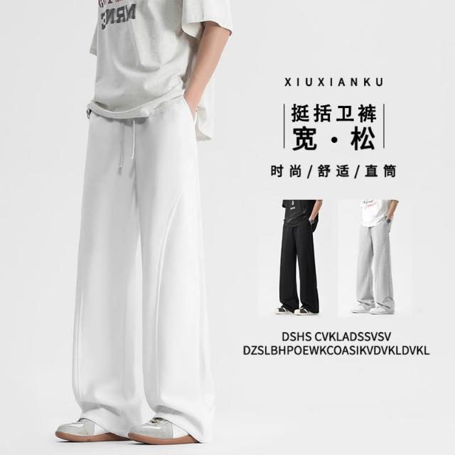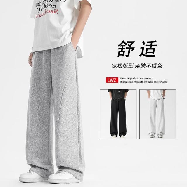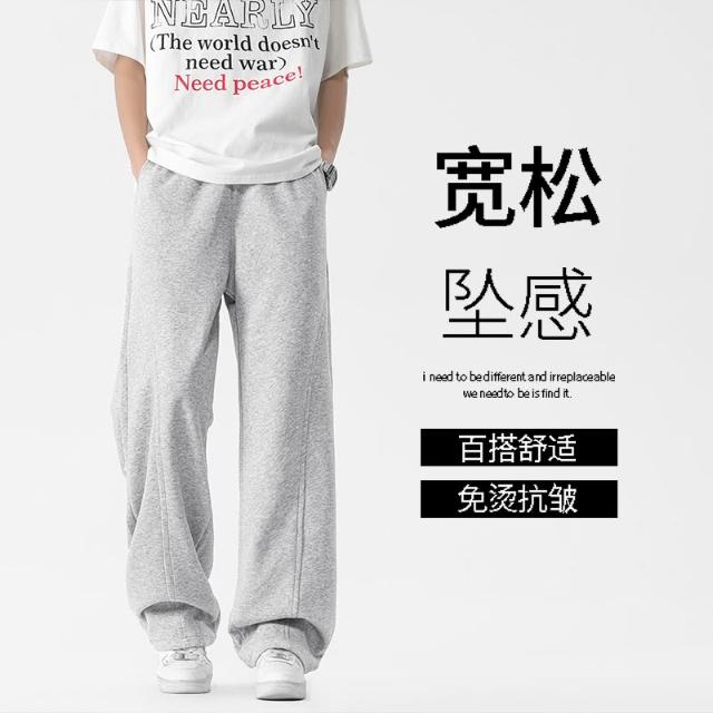 直筒褲子男款薄款運動男褲男士灰色彎刀褲男生高質量寬鬆休閑百搭褲衛褲