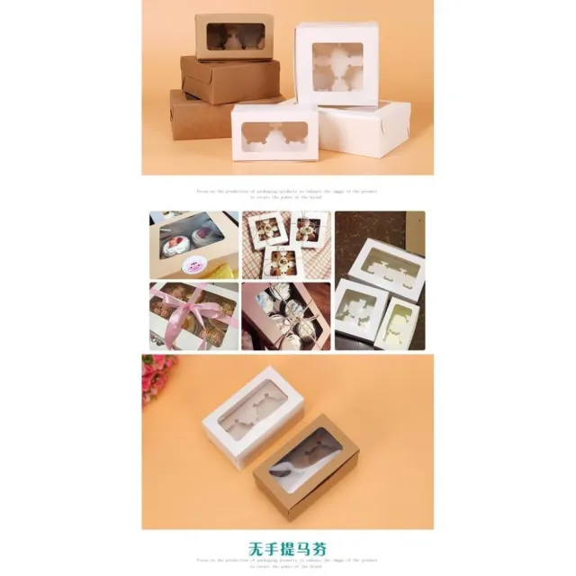 嚴選shop 2格 開窗牛皮紙方盒 白色紙盒 馬芬瑪芬盒 杯子蛋糕盒 慕斯奶酪盒 展示盒 禮盒 蛋塔盒 C016
