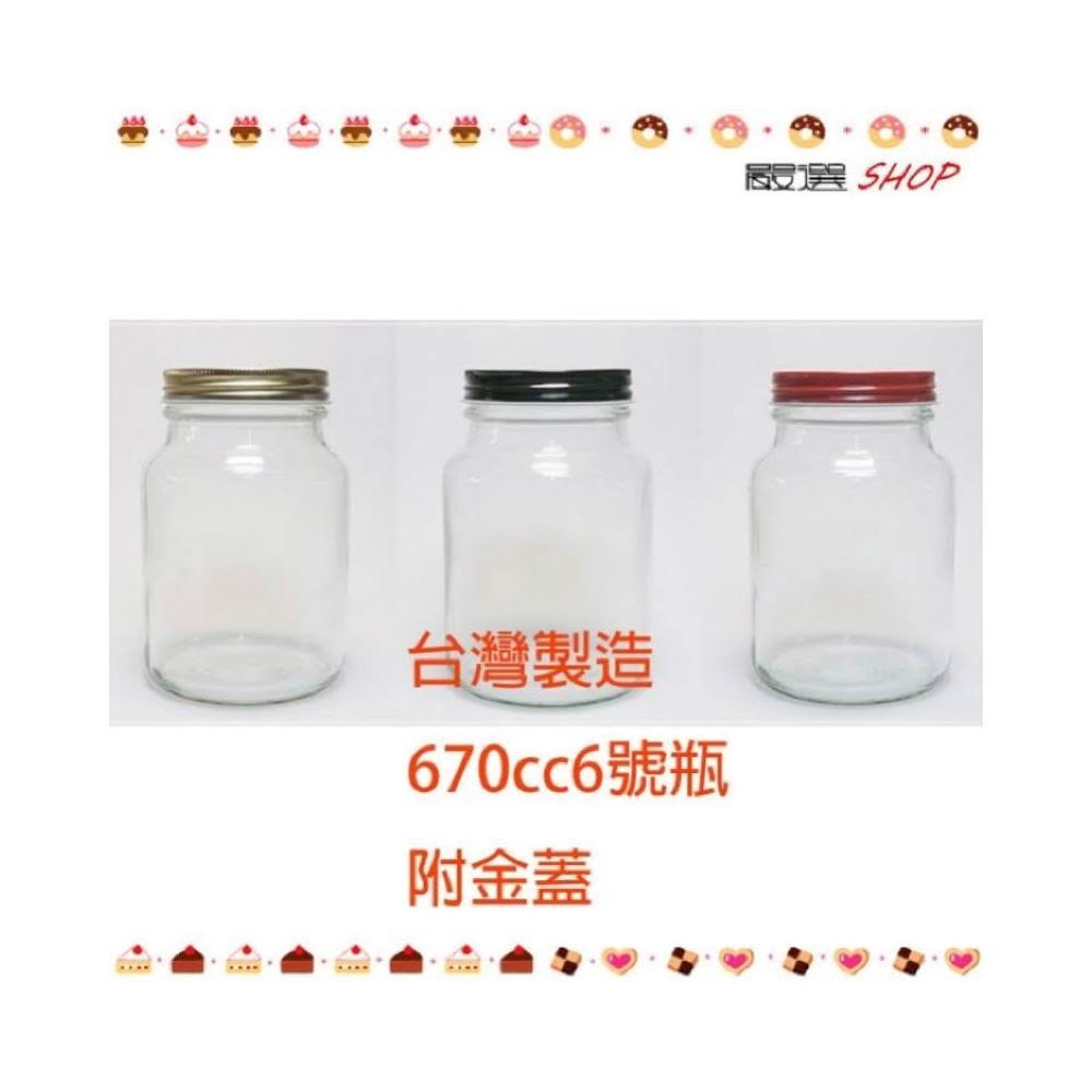 嚴選SHOP 台灣製造 附金蓋 670cc 6號瓶 收納罐 玻璃杯 透明罐 T021