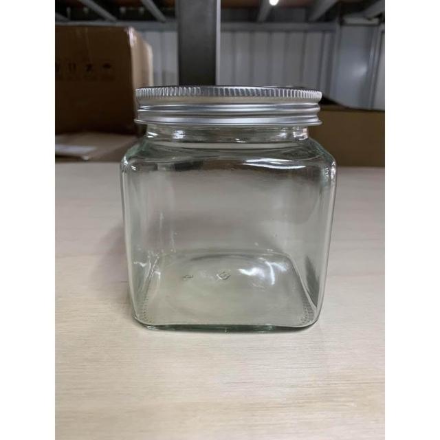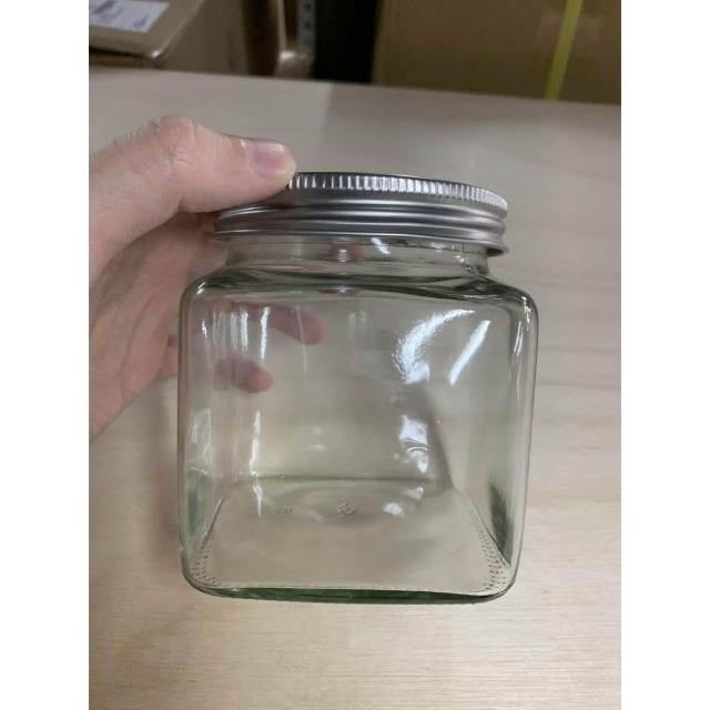 嚴選SHOP 台灣製造 附蓋 600cc銀蓋寬口四方罐 收納罐 果醬瓶 醬菜瓶 玻璃瓶 玻璃罐 儲物罐 T048 瓶子