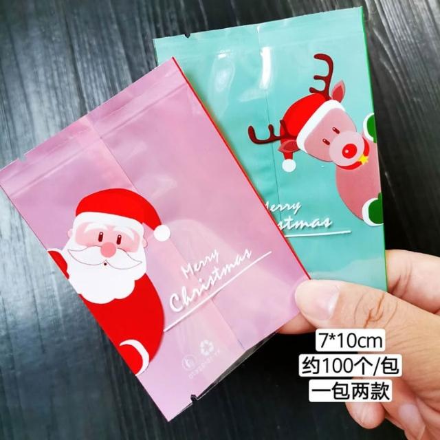 嚴選SHOP 98入 7*10CM老人馴鹿雙色機封袋 封口袋 聖誕包裝 聖誕節餅乾袋 餅乾糖果袋 熱封袋 X096